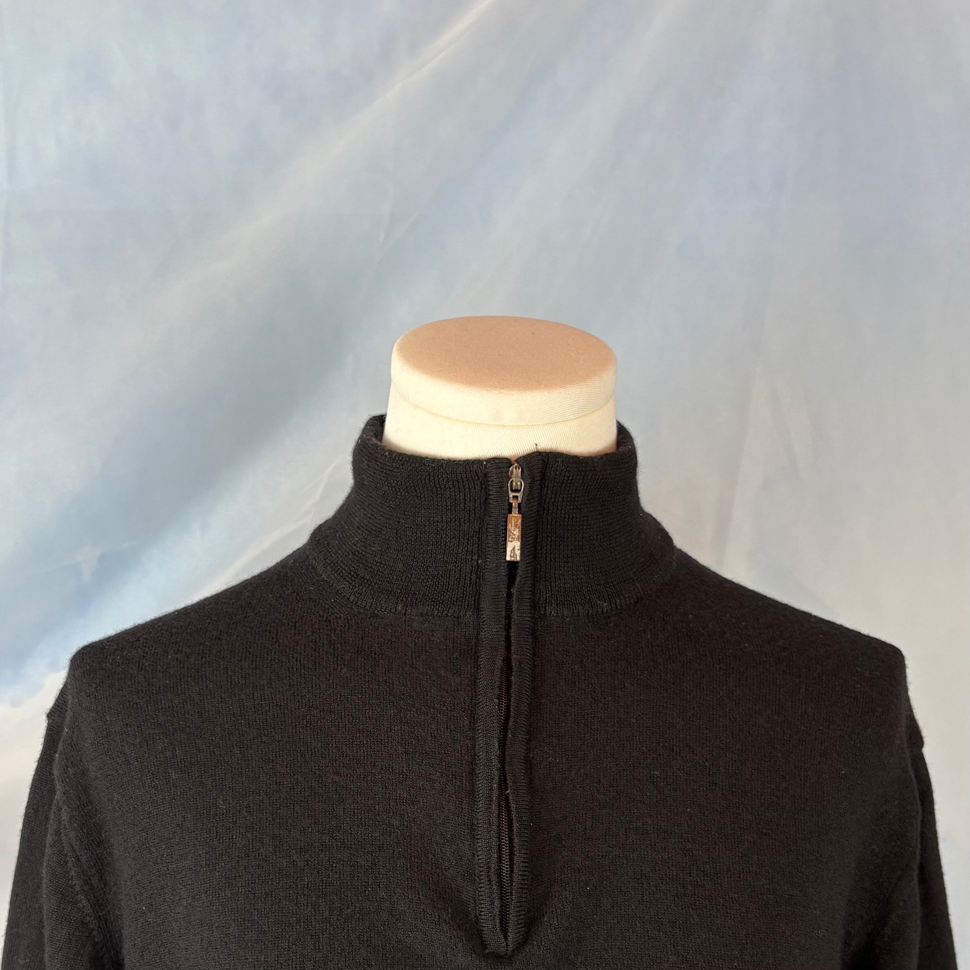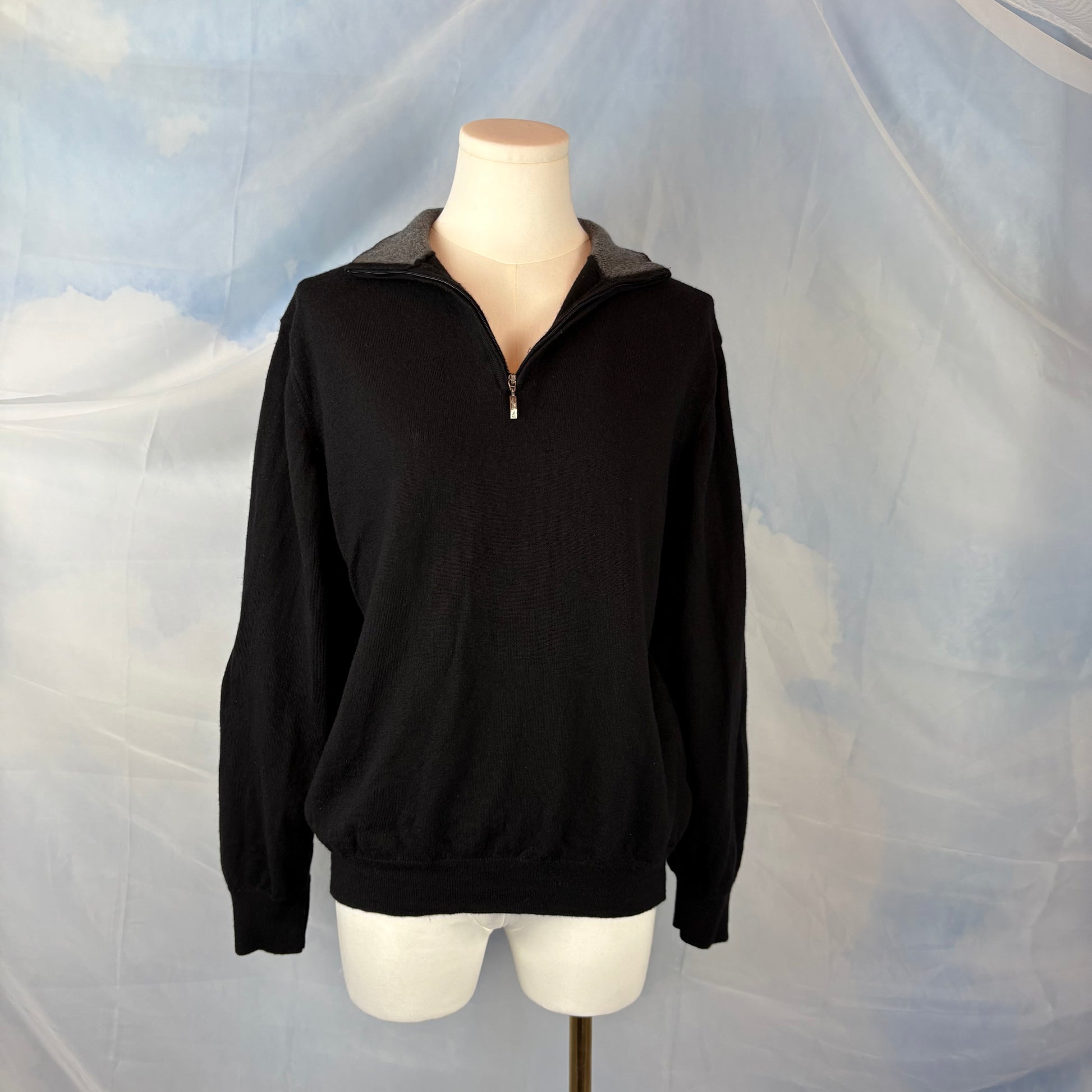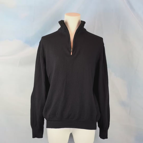 An Italian made merino wool quarter-zip in a classic black color. Soft, lightweight, and ideal for layering. A classic, clean silhouette that never goes out of style.